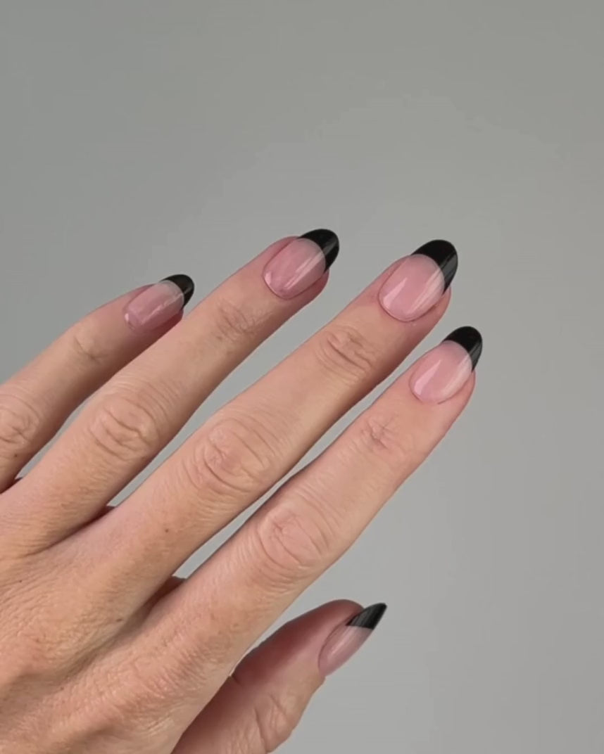 Erlebe die zeitlose Eleganz unserer Black French Gel Strips und verleihe deinen Nägeln eine einzigartige, dramatische Note.