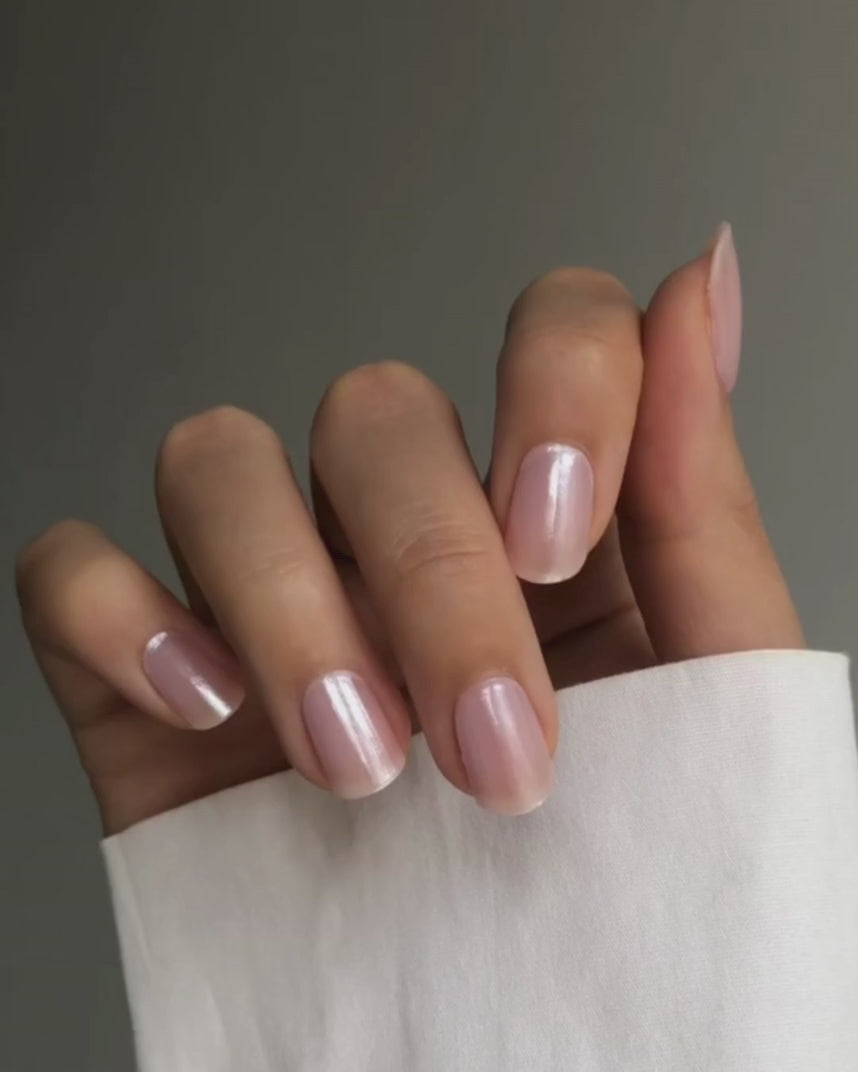 Cremiges Nude mit schimmerndem Chrome-Effekt.